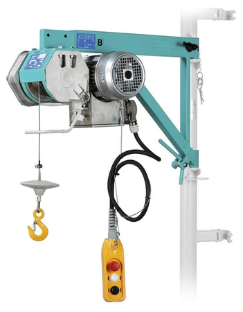 Wciągarka linowa budowlana z przedłużanym wysięgnikiem (udźwig: 200 kg, wysokość podnoszenia: 50 m).