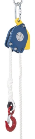 Bloczek służy do podnoszenia i opuszczania ładunków. Jest wyposażony w mechanizm hamujący ładunek w przypadku puszczenia liny przez osobę podciągającą.